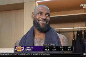 体育资讯3月31日讯 NBA常规赛,湖人队120-101战胜奇才队。赛后,詹姆斯接受了采访。以下为完整版。