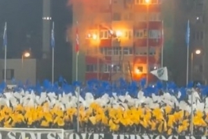 本场比赛在波黑的主场进行,在球场附近的建筑物内,热情的球迷燃放焰火和烟花为国家队加油助威。