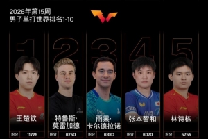 国际乒联2026年第15周世界排名:孙颖莎和王楚钦领跑